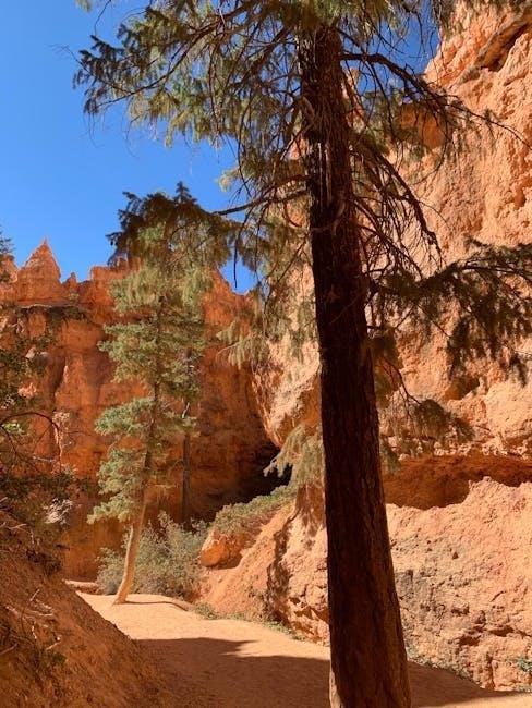 Bryce Canyon National Park maps‚ particularly the PDF versions‚ effectively illustrate the park’s dramatic elevation changes and complex terrain. Contour lines are prominently featured‚ showcasing the steep slopes of the amphitheaters and the varying heights of the hoodoos. Many maps include specific elevation markings‚ such as 6‚800 ft (2‚073 m) near Yellow Creek‚ providing a clear understanding of the altitude.